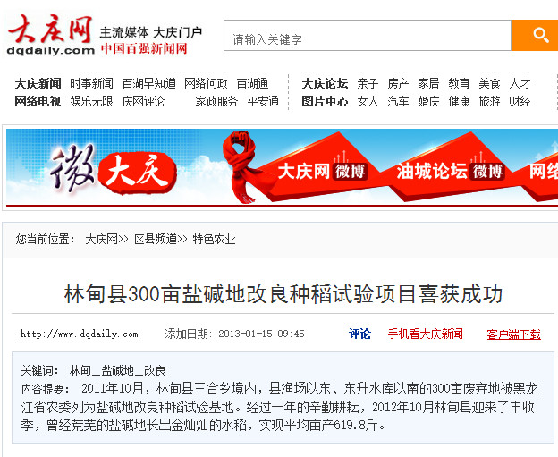 大慶網(wǎng):八一農(nóng)大博士“下鄉(xiāng)”鹽堿地上做“文章”