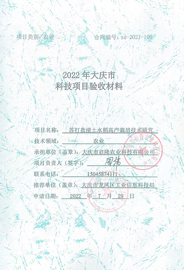 2022年大慶市科技項(xiàng)目驗(yàn)收材料